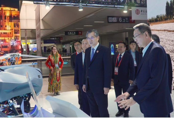 11月5日,自治區黨委副書記、兵團黨委書記、政委何忠友赴上海參加第八屆進博會相關活動並到有關單位調研。這是何忠友在兵團展位察看參展企業展示產品。 兵團日報全媒體記者 李柏成 攝