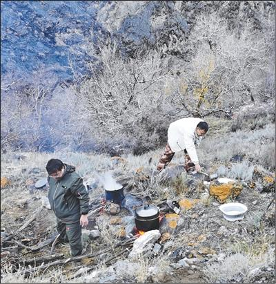 山裡的低溫不僅人受不了,儀器也受不了。“在‘老虎口’的7天6夜,測繪儀都被凍得無法工作了,我們把儀器抱在懷裡讓它回溫后再進行測繪。地面凍得硬邦邦,數據基准點都得用冰鎬鑿。”公維強說。