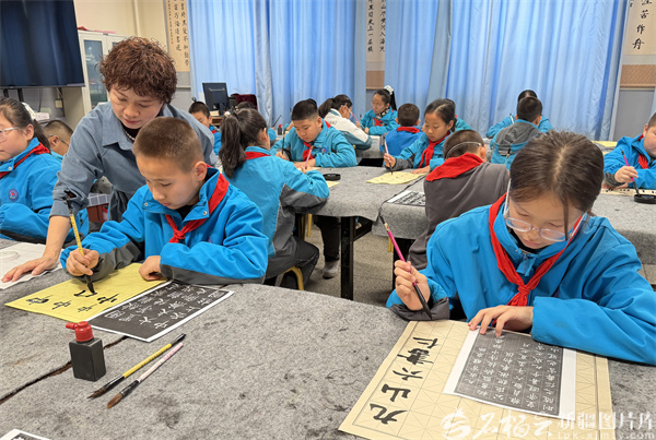 12月3日,精河第一小学学生在校书法社团学习书法。