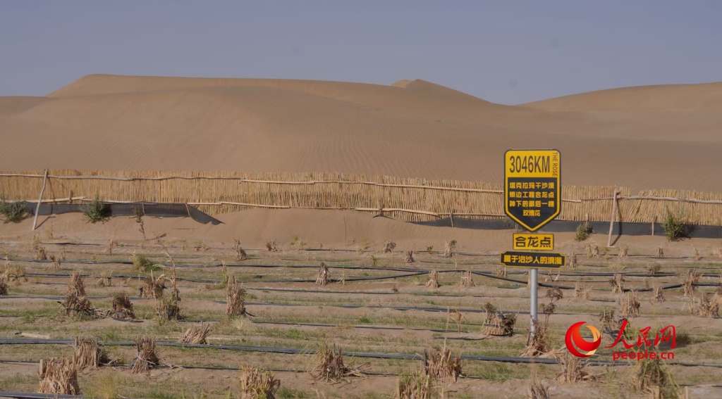 塔克拉玛干沙漠锁边合龙点。人民网记者 李欣洋摄