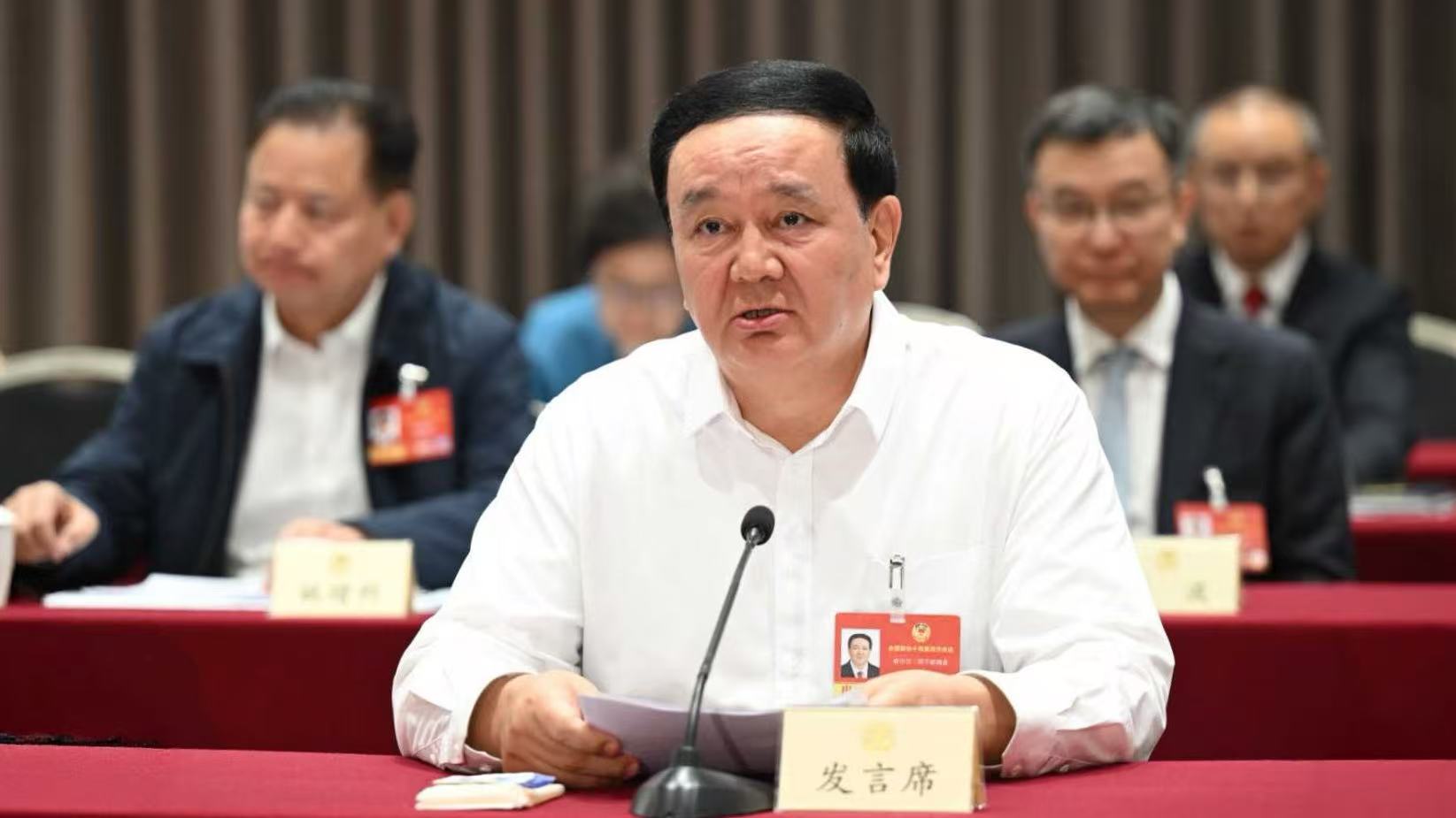3月5日下午,全国政协委员、新疆维吾尔自治区政协主席努尔兰·阿不都满金在全国政协十四届四次会议中共界别小组会议上发言。姜贵东摄